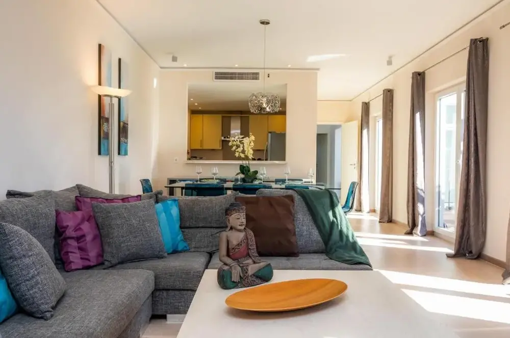 More information about Des Port - Vistas al marFinca Xemarri is a spacious villa located in Santanyi, Spain, offering six bedrooms and five bathrooms. The property features an outdoor swimming pool and free parking. Guests can enjoy the well-maintained gardens and regularly tended pool area. Reviews highlight its cleanliness, comfort, and suitability for family stays.