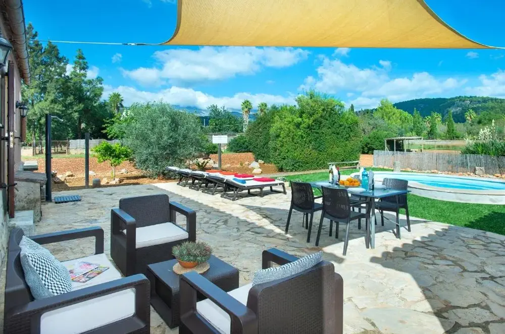 Alojamiento espacioso: Sotio en Campanet ofrece una espaciosa casa de vacaciones con tres dormitorios y dos baños. La propiedad cuenta con una sala de estar, salas familiares y una entrada privada. Espacios al aire libre: los huéspedes pueden disfrutar de un jardín y una terraza con vistas al jardín.