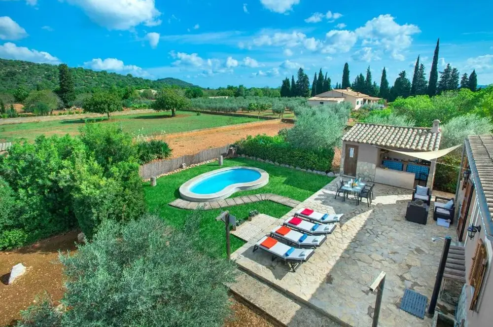 Más información sobre Son Colom -Turismo de interiorAlojamiento espacioso: el hijo Jan Nou en Campanet ofrece una espaciosa villa con cuatro habitaciones y tres baños. La propiedad incluye una sala de estar, salas familiares y una cocina totalmente equipada. Servicios al aire libre: los huéspedes pueden disfrutar de una piscina con vistas, una terraza y un exuberante jardín.